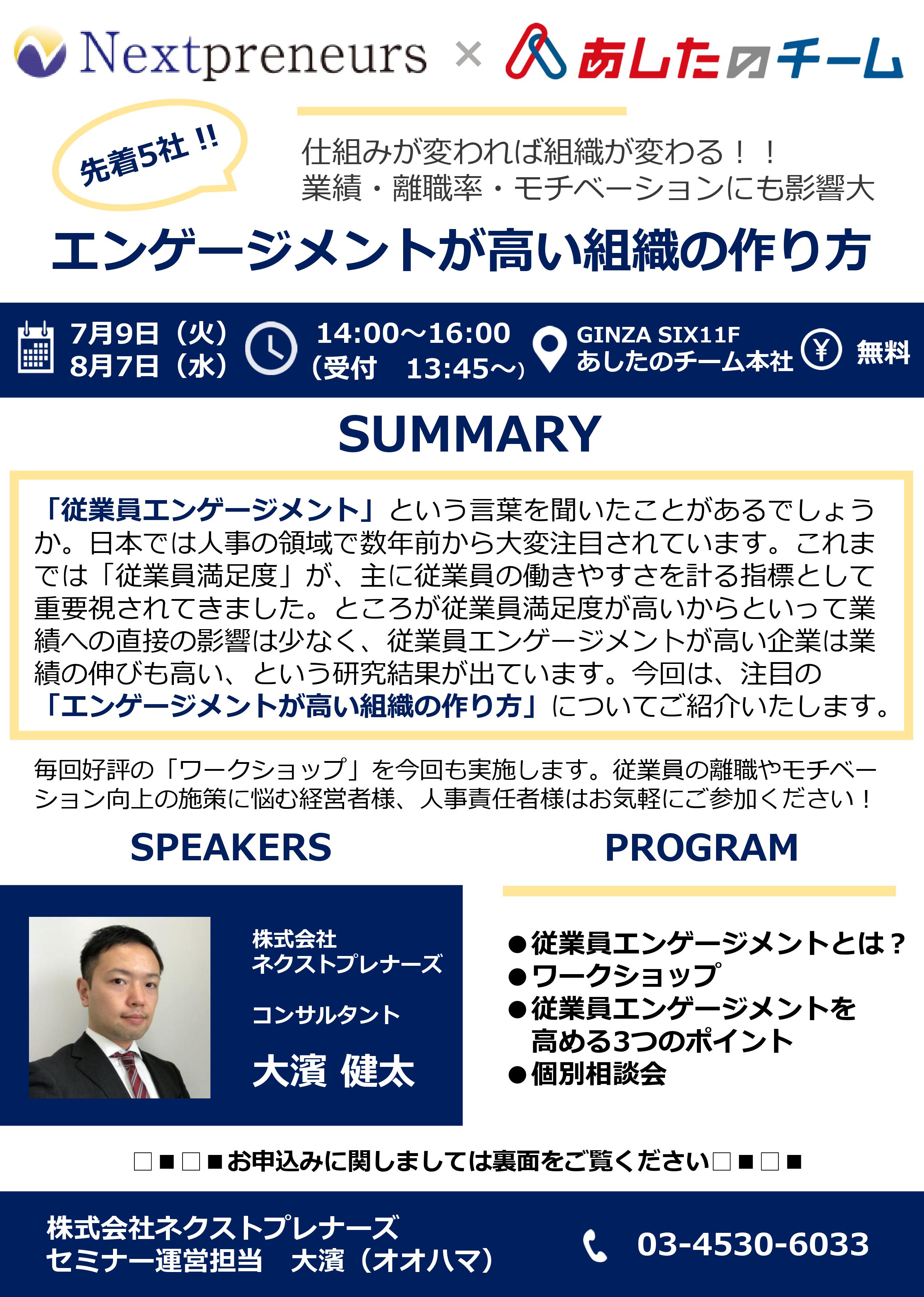 今回は業績や離職率、従業員のモチベーションにも関わると言われている、今大注目の「エンゲージメント」をテーマにお話ししようと思います。