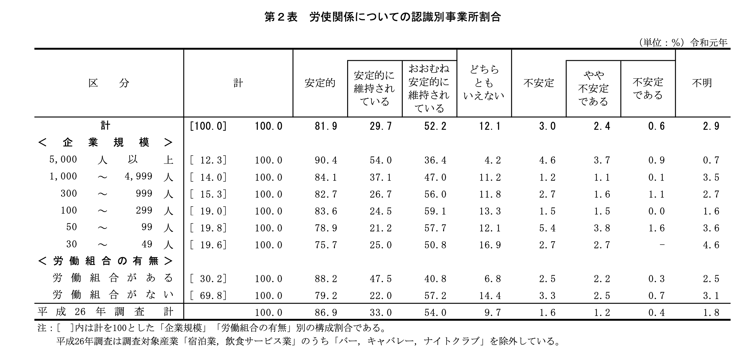 第2表 労使関係についての認識別事業所割合