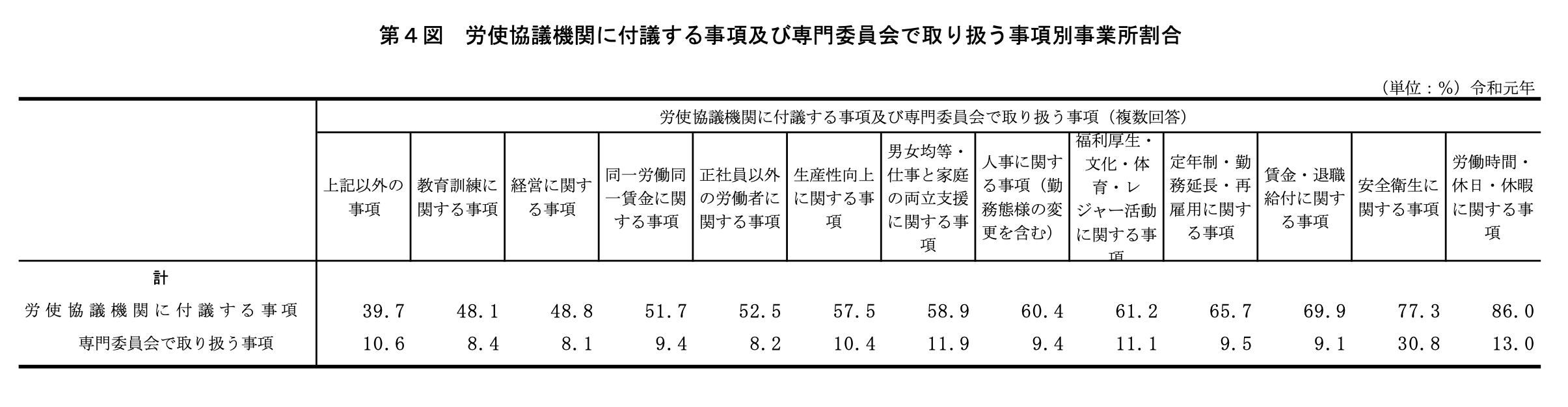 第4図 労使協議機関に付議する事項及び専門委員会で取り扱う事項別事業所割合